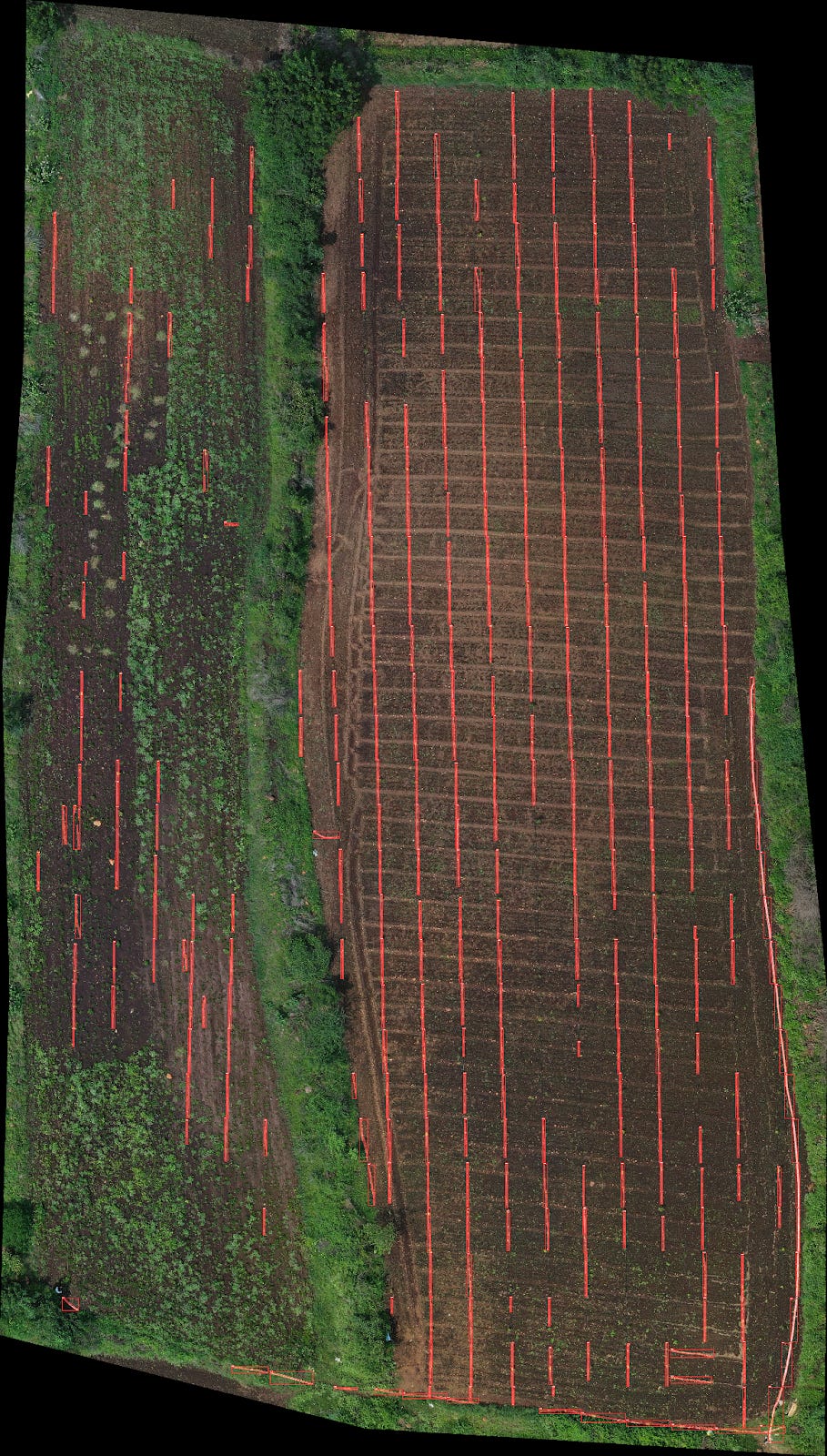 However there was another challenge, prediction on a single image was taking 2 hours. First, the image was broken into tiles, then prediction on each tile and then recombining the results to get plot level detection! Something had to be done that allowed parallelizing this on a GPU. Here came another soldier from the world of open-source awesomeness: SAHI: A model agnostic tiling/slicing code. Now, we were able to predict in 2-3 minutes what was taking us 2 hours before. We could detect drip in a series of sections.