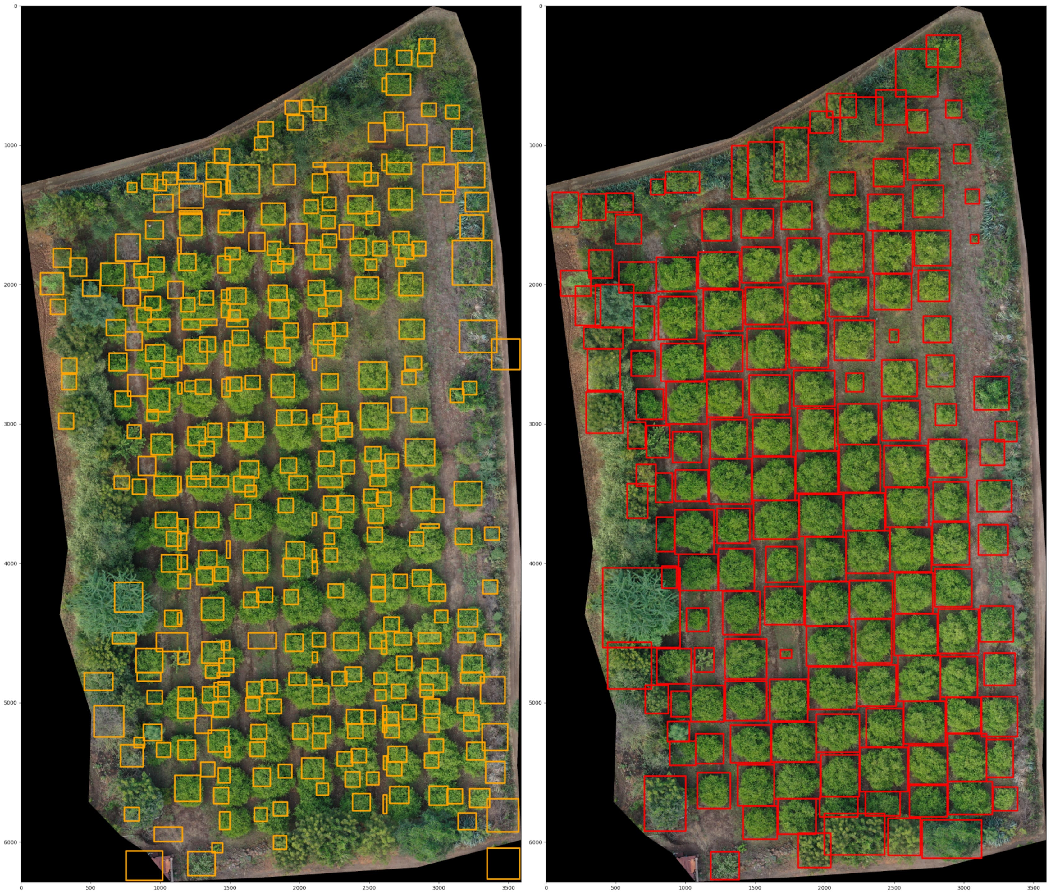 It was making a lot of sense then to move from using DeepForest to using a comprehensive, unified model Detectron-2 for all of small tree, big tree and drip irrigation counting and that’s what our team did.